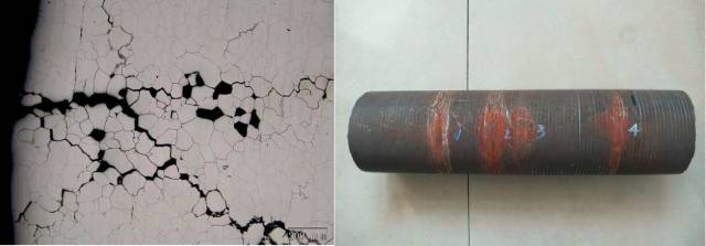 例如:某公司合成氨廠爐的工藝氣預熱管因為晶間腐蝕引起的開裂,發(fā)生泄漏事故。預熱管出現(xiàn)晶間腐蝕是因為奧氏體不銹鋼晶界析出Cr23C6,在管內Cl-作用下管子短期出現(xiàn)晶間腐蝕開裂。